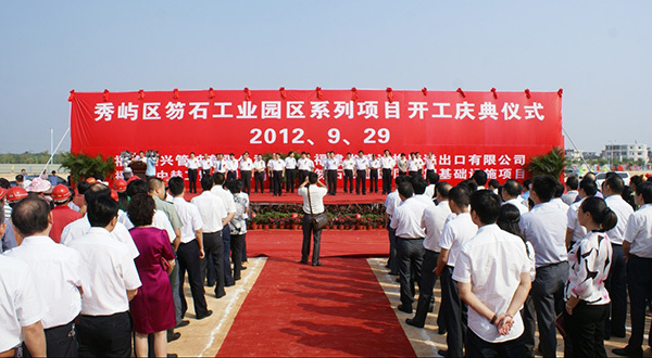 2012年9月29日,董事長(zhǎng)帶領(lǐng)公司的主要領(lǐng)導(dǎo)出席了福建省莆田市笏石工業(yè)園區(qū)系列項(xiàng)目開(kāi)工儀式。該園區(qū)規(guī)劃建設(shè)占地面積達(dá)6.3平方公里,重點(diǎn)發(fā)展服裝、鞋業(yè)、木業(yè)制品、玩具、織造和水產(chǎn)品加工等環(huán)保型、勞動(dòng)密集型的輕工業(yè)產(chǎn)業(yè)。